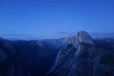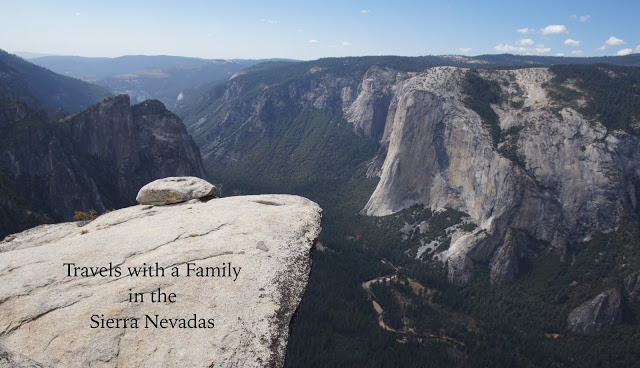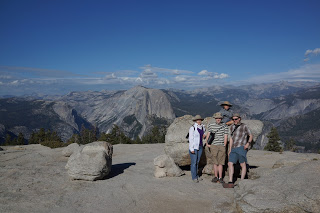 The overlook was a terraced area full of boulders perfect for sitting and stone walls well-suited to keeping people from plummeting to their deaths. It provided a great view of the valley, facing the ever-popular Half-Dome. B claimed a prime spot among the boulders for Tripod and guarded his territory. Nearby, the boys ate their hotdogs and chips. AJ sat a few yards away on a stone wall eating an apple, pumpkin seeds, plantain chips and rice milk. The sun peaked over her shoulder as she sat and ate and wrote.