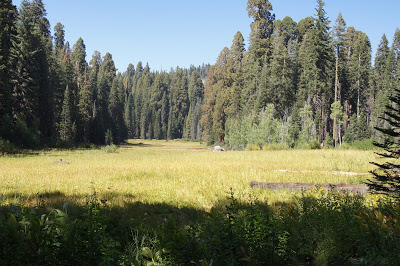 Well before the sun started its western bow, they descended yet another wooded hill and spied a golden prairie below through the trees. It was a sign that the end of the trail was near. In all, they had hiked seven miles through the land of the mighty sylvan giants. With sore legs and dusty feet, they climbed on the shuttle bus back to the parking lot, sitting in the last few open seats, with no pity for the people who had to stand.