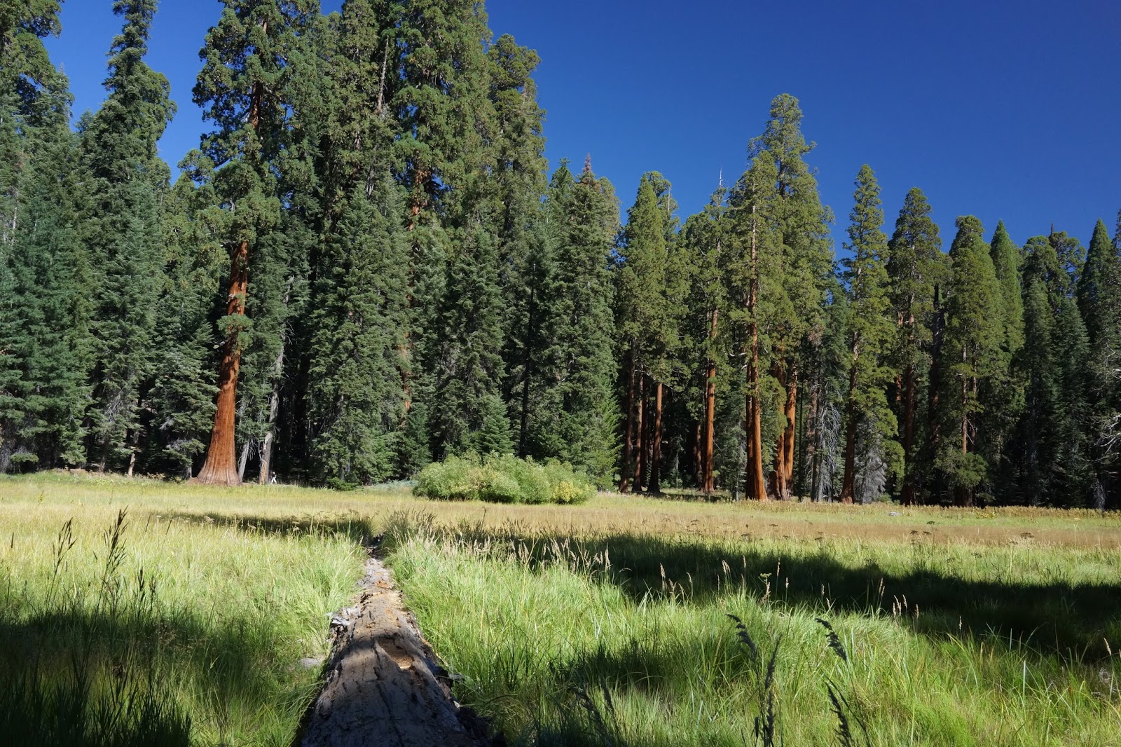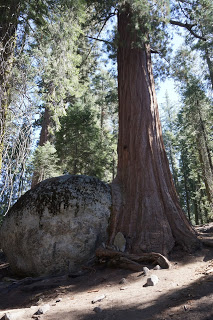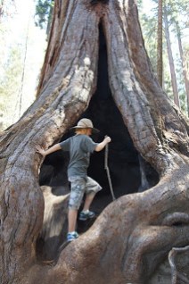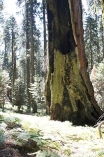 After visiting the popular General Sherman, The President and The Senate tree displays, the family marched on into the sparse, but shaded forest, stopping sometimes to admire particular specimens or to wait for B and Tripod to take pictures. The longer they walked the fewer people they saw, the more huge trees they encountered.