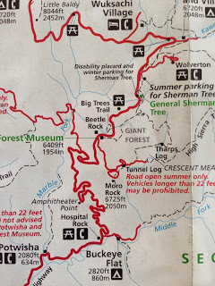 The journey to Sequoia National Park began with a steep, serpentine road that was flanked by the same dry, tired landscape of the valleys below. As the altitude increased, the forest thickened, the turns tightened and car sickness suggested itself in more than one passenger in the car. The road was wilder than some roller coasters. Halfway up the mountain, B stopped the car so OneSon could take motion sickness medicine and switch to the front seat.