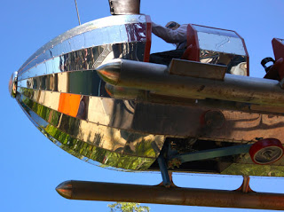 B, OneSon and TwoSon rode Luigi’s Flying Tires next. They were bumper cars that looked like giant wheels. AJ watched from a thin slice of shade on the sidelines.
