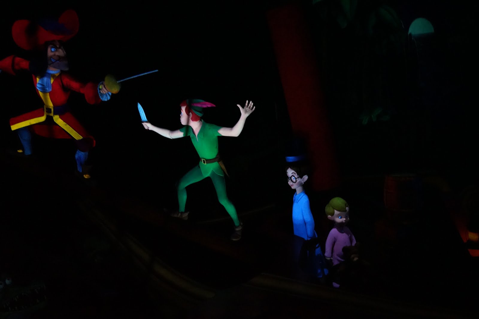 Once in Disneyland, after passing under Cinderella’s diminutive castle, the first story the family experienced was Peter Pan. J. M. Barrie created Peter Pan in 1902, as a character in the novel The Little White Bird. Two years later, he wrote him into a stage play called Peter Pan, or The Little Boy Who Wouldn’t Grow Up. The ride at Disneyland pulled the family in small cars over tracks through darkened spaces flanked by dioramas depicting scenes from the 1953 Disney movie, Peter Pan.