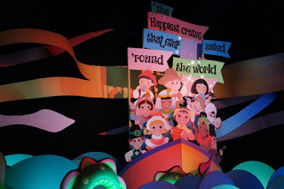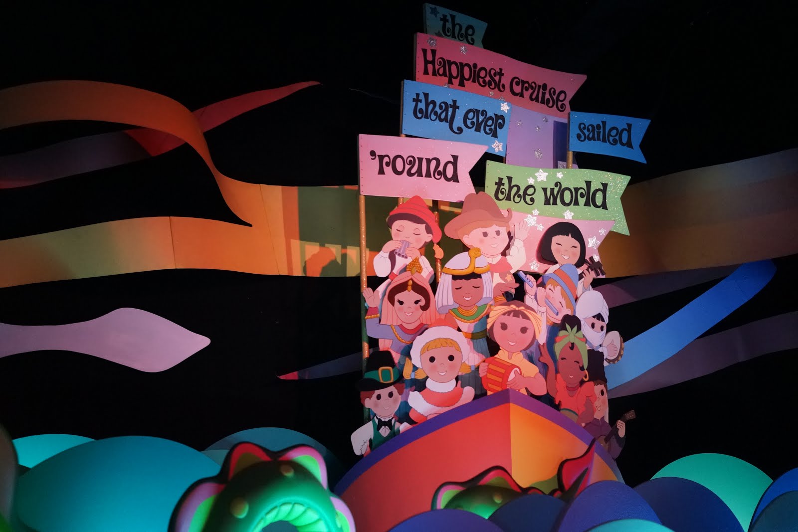 “it’s a small world” had no jarring jerking bumping aspects, but was a gentle boat ride through a white and gold castle full of doll-puppets singing “It’s a Small World” ad infinitum.