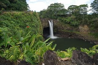 They drove the sneakily steep Saddle Road back to Hilo, stopping at Rainbow Falls just as a bus-load of selfie-taking tourists flocked to the spot. Rainbow Falls is a large arch with water falling over it. Stairs along the cliff lead up to a beautiful banyan tree. The tree spanned for yards in all directions, standing like a tall woman, spreading her arms which were draped with a string shawl. Except this tree-woman had hundreds of arms.