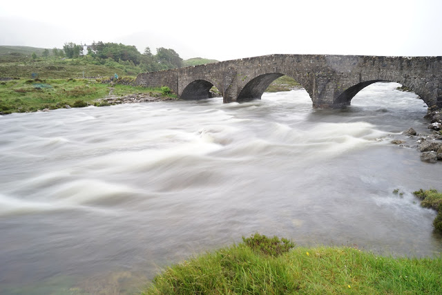 Then it was back to Glencoe again for foggy, misty pictures of the Three Sisters (three large mountains in a row). AJ sat in the car for an after-lunch rest while B and TwoSon and Tripod and Umbrella disappeared down a trail.