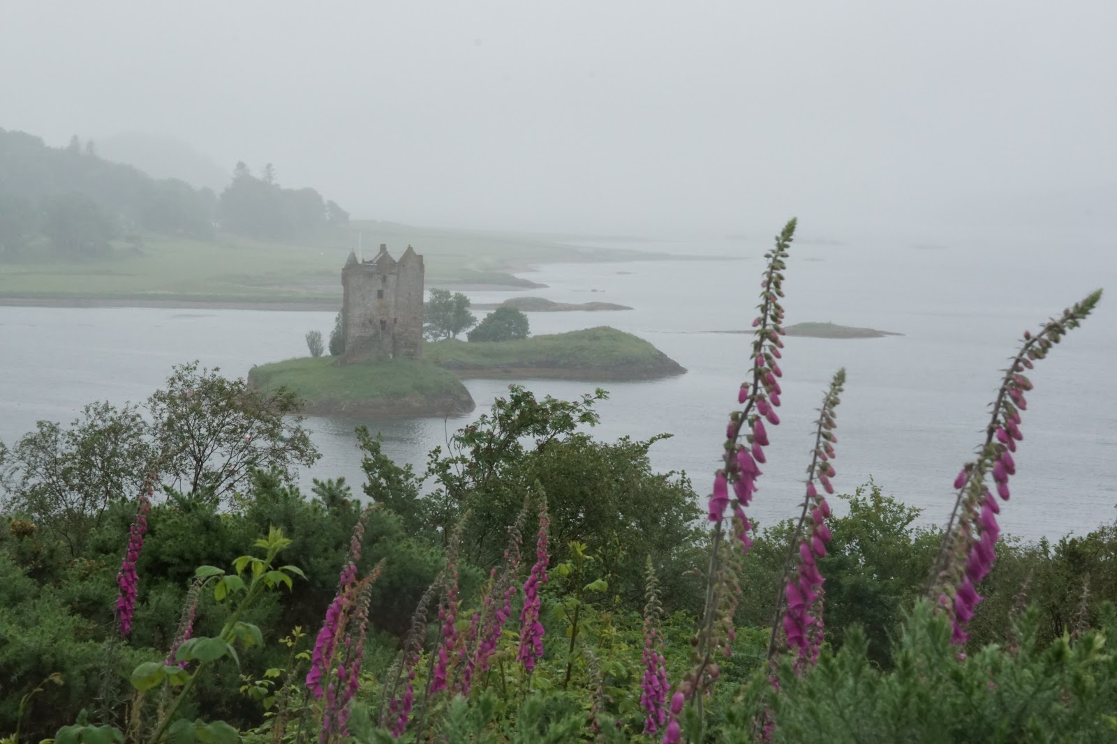 Breakfast was served in the sitting room, with fruit, homemade bread, and American bacon, then the family took off on another action-packed nerve-racking drive, stopping first at Stalker Castle overlook.