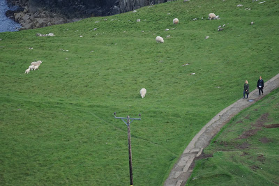 | AJ and TwoSon walking back from the lighthouse, and sheep |