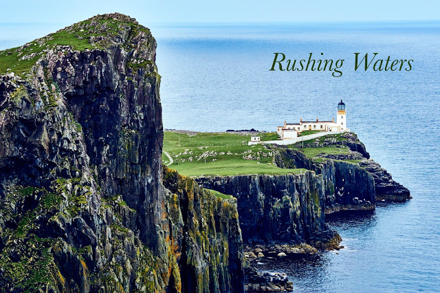 They stopped at KiltRock for 5 minutes, a cliff of basalt columns of rock that reminded one of pleats in a kilt. The parking lot was full of buses and the family had to look over the heads of crowds of tourists to see it. There again were ravens playing in the wind, hovering in the updraft as if suspended in midair.
