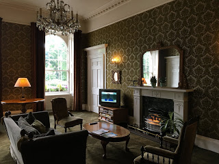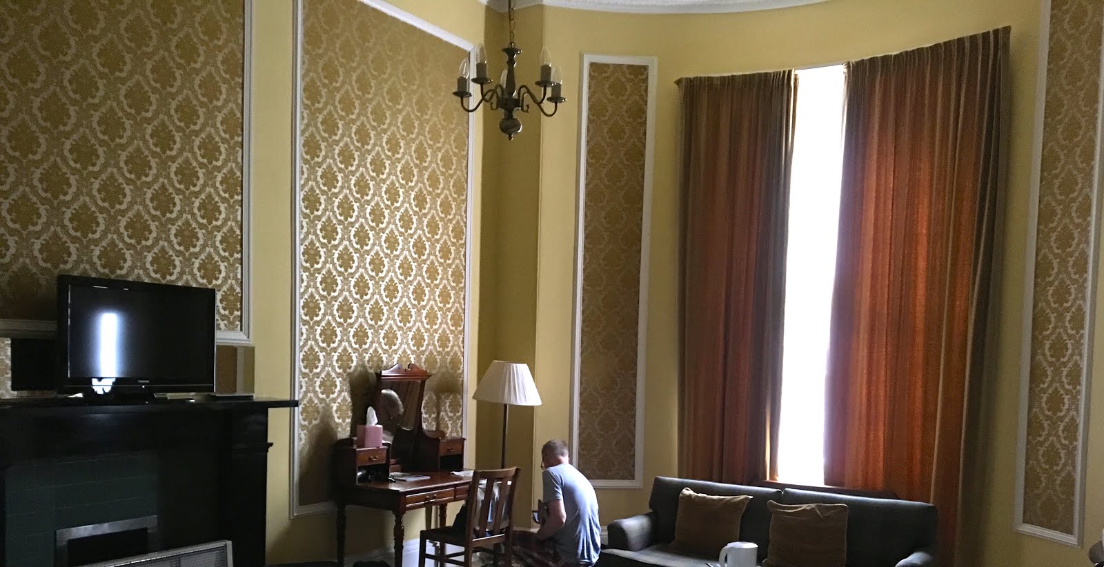 But before all that, AJ explored the building a little more. The bed and breakfast was in the “newer” houses in Edinburgh, the original domiciles of bourgeois whisky merchants, with elaborately decorated, high-ceilinged rooms with lots of space outside in front and behind the building. She couldn\’t sit in the high clear windows and ponder the details, because the clock was ticking down, they were leaving, there was not enough time to savor the atmosphere.