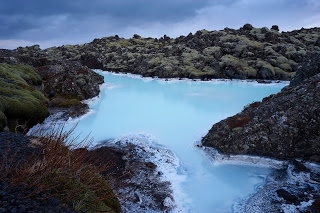 She opened the door against a healthy wind and shut it quick for Snoring Snorri’s benefit, zipped up her coat and walked down the trail to find a blue-green stream running through black lava landscape, steam floating up from who knows where. She took a few iPhone pictures for her “weird water” collection and made her way back to the car.