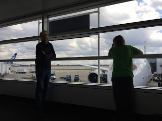 When they arrived at their gate at the airport, their plane wasn’t there. Besides having the gate blocked by emergency vehicle and personel, the microphone at Gate M18 had microphone problems, so the large man there used his sonorous voice to shout announcements at the Iceland-bound passengers waiting there. The flight was delayed forty-five minutes, which gave Astrid time to look and observe, write and wonder. It also extended their landing time to a more humane hour than the originally scheduled 4:20 a.m.