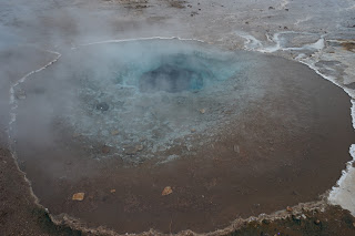 They drove smooth roads to a field of Geysirs, complete with restaurant and hotel, where water boiled and exploded out of the ground.