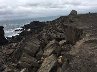 She opened the door against a healthy wind and shut it quick for Snoring Snorri’s benefit, zipped up her coat and walked down the trail to find a blue-green stream running through black lava landscape, steam floating up from who knows where. She took a few iPhone pictures for her “weird water” collection and made her way back to the car.