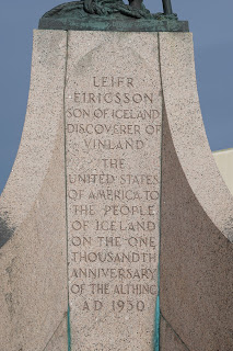 On the way into Reykjavik, they were rerouted a few times before finding a parking spot along a quaint street just a few blocks from Hallgrímskirkja, the Lutheran church built to resemble a Viking longboat. In the nearby bakery, Brauð*, Bjorn bought two sticky buns from three red-headed bakers, brought them to the car and shared them with Snorri as Astrid gnawed on a protein bar. After their snack, they walked up to the church, admiring the unique architecture, and the Leif Erikson statue sitting victoriously in front of it. A short, cool, windy walk down to the ocean shore, past small houses, tattoo and vape shops, led them to the popular silver long-boat sculpture, The Sun Voyager.