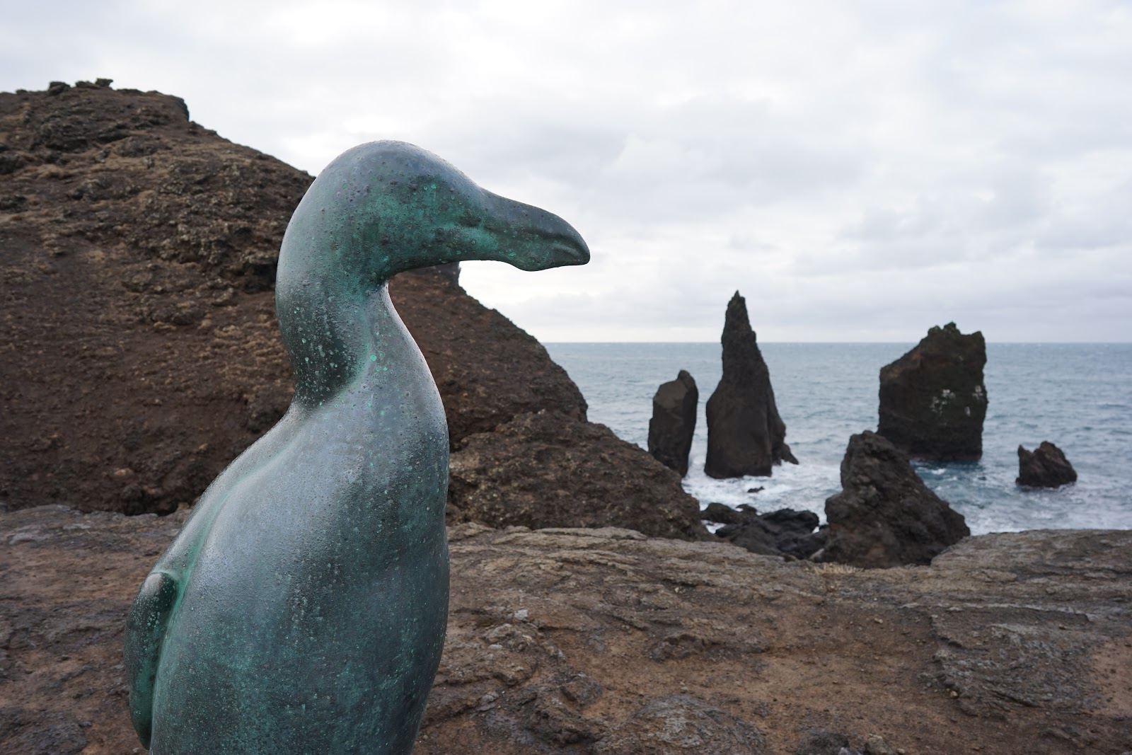 Next they drove along the steaming, lava landscape down to a beach featuring a large Great Auk statue and Bird Island, a large rock off the shore where white birds nested, flew and flit. A few minutes after parking, a large van with big tires pulled up in front of them, with “Thor Photography Tours” on the side. It wouldn’t be the last run-in with them. Bjorn opened the door and shut it this time, but didn’t shut it with enough force, and the car told him so with ding noise. A brisk Icelandic breeze blew in through the open hatch as he collected his photography instruments. Astrid and Snorri shivered.