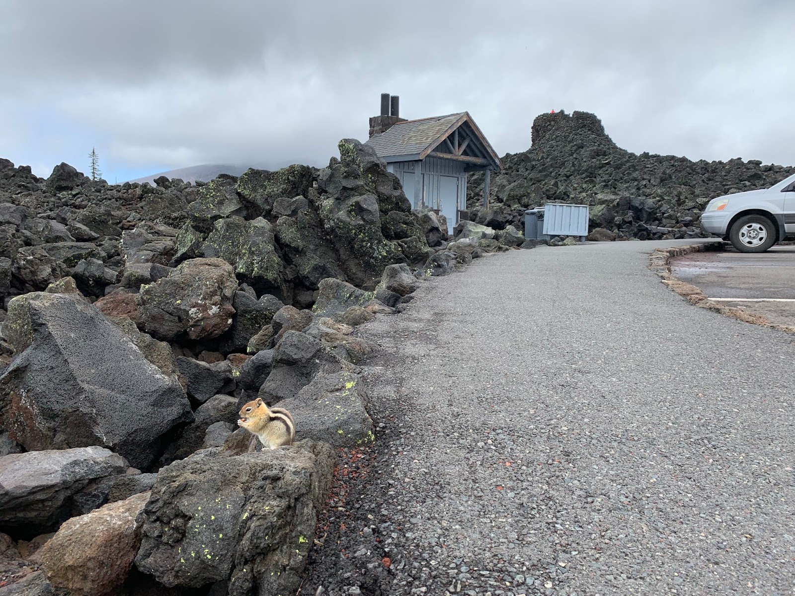“Hey, look, there’s a chipmunk,” Astrid pointed in front of the car, to a ledge of volcanic rock overlooking the parking lot. “I wonder what it eats out here. There’s no vegetation for miles,that I can see. Poor thing.”