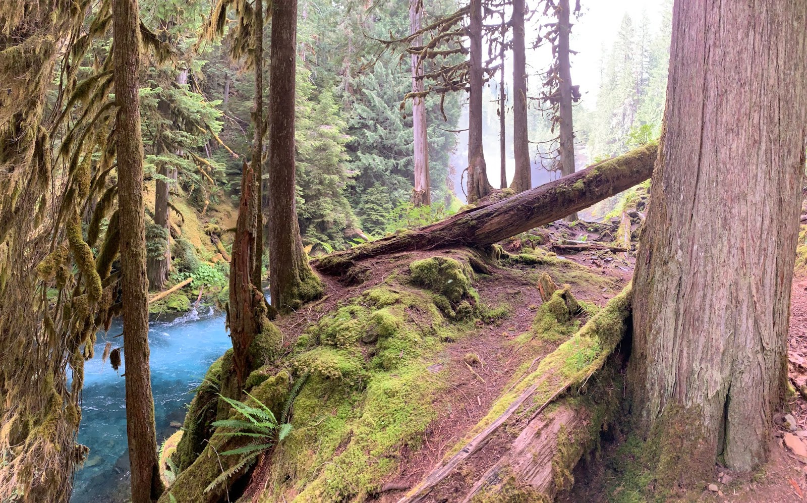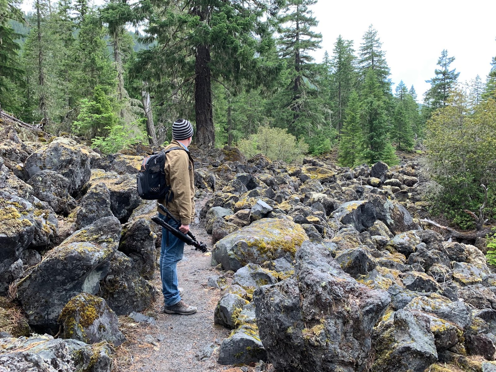 Astrid noticed that every natural place she traveled to specialized in different colors. Spring in northern England showcased bright green in its hills and pastures against grey skies with white specks of sheep. Northern Michigan used a lot of the dark green of pines against blue sky and an ever-changing palette of the lake. Here, Willamette National Forest was best at \”earth-colors\” and they were spectacular.