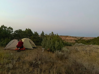 After dinner and dessert, and the use of the clean, not-a-tree bathrooms in the hotel, they set out again, back into TRNP, back to where they would spend the night.