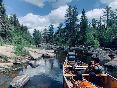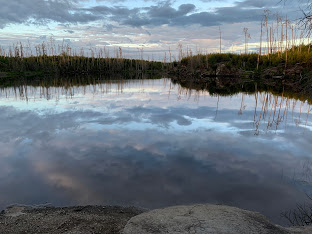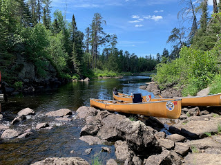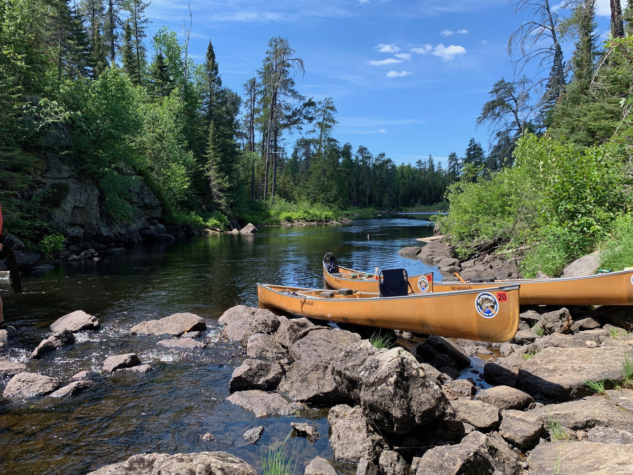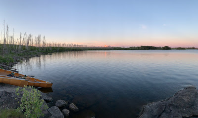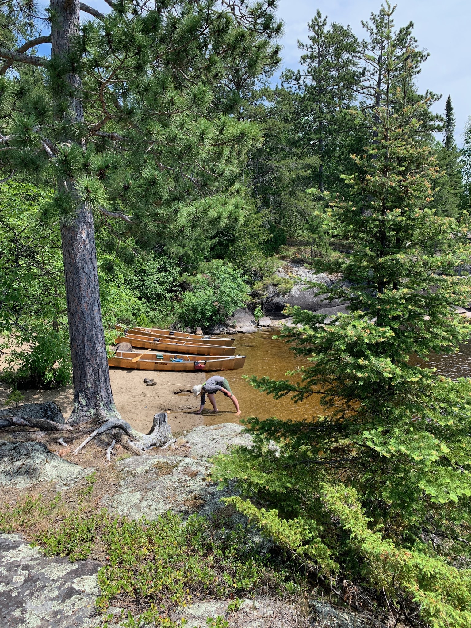 Campsite #1323 was a beautiful campsite, but it was also dry and hot in the late afternoon sun, even in the shade it was uncomfortable. After all the resting and exploring had been done, Snorri and Astrid convinced a G2 fellow canoeist, D, to take a canoe out to explore. The minute they launched into the water, everyone felt better, the cool air blowing faintly against their faces.