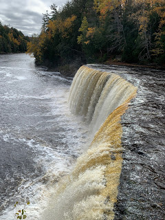 Finally the clock at the top of her reader read 8:00 p.m., an acceptable time to go to sleep, so in the not-so-lonely dark, with voices of her neighbors down on the stream’s flood plain, the constant rippling watery gurgle of The Falls, and the constant rush of the Manistee River, a stone’s throw away, she fell asleep.