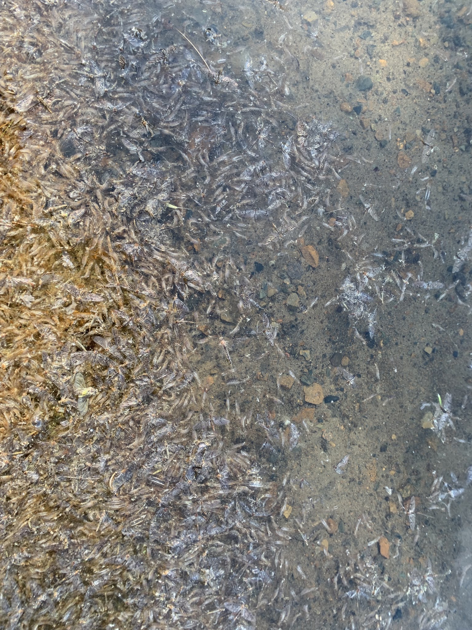 In the morning, the lake was covered with a film of dead Mayflies (Ephemeroptera spp.), which had died en masse during the night, and fallen into the water. They washed up in sheets onto the shores and dotted the waters everywhere. The mayflies seemed to be as numerous as the stars in the sky Astrid saw the night before, but unlike the almost-eternal stars, the delicate insects live for only a day.