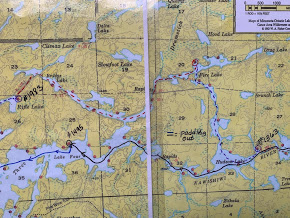 In the morning, all eight members of G2 packed a lunch and set off from The Best Campsite, traveling east to the Kawishiwi River, then south toward Fishdance Lake to see the Fishdance Picture Rocks, ancient drawings on the side of a rock. All along the trip, fishermen fished, non-fishermen paddled and looked and enjoyed the trip. When Astrid finally saw the rock hieroglyphs, she was a bit underwhelmed; the Fishdance hieroglyphs looked like smudges of red on rock.