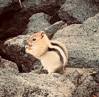 “Hey, look, there’s a chipmunk,” Astrid pointed in front of the car, to a ledge of volcanic rock overlooking the parking lot. “I wonder what it eats out here. There’s no vegetation for miles,that I can see. Poor thing.”