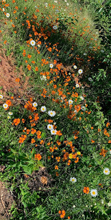 Up hill and down, around hair pin turns punctuated by short straights, they drove, through misty fog and patches of sun, by roadsides sprinkled with pink digitalis wildflowers on one side of the mountain, white fluffy flowers dominating the roadside on the other side of the mountain.